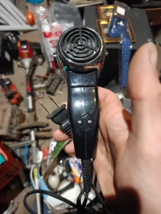 Asciugacapelli dal design classico, un pezzo che evoca un'epoca passata. - Finitura cromata lucida. - Impugnatura ergonomica nera.