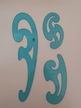 Set di curvilinee in plastica blu. - Tre pezzi di diverse dimensioni e forme. - Ideali per disegnare curve e linee morbide.