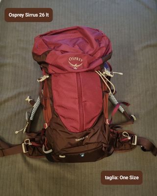 - spedisco solo a persone con buone recensioni - NON spedisco con Poste Italiane avendo avuto problemi con questo corriere NUOVO ancora imballato mai usato (aperto solo per fare le foto) zaino REGOLABILE (perciò adatto a persone di diverse altezze) OSPREY SIRRUS 26 lt studiato principalmente per Donna taglia schienale: O/S (38-48 cm) - One Size Misura Unica colore: Elderberry Purple / Chiru Tan peso: 1,25 kg ean: 843820177220 codice produttore: 10005785 codice ASIN (Amazon): B0D35W96LP costo di listino Osprey: € 175