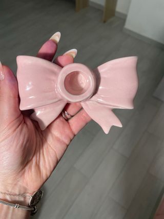 Grazioso portacandele a forma di fiocco, perfetto per aggiungere un tocco di dolcezza alla tua casa. - Design a fiocco. - Realizzato in ceramica. - Colore rosa pastello.