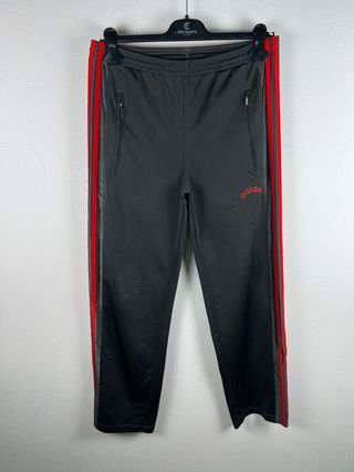 Pantaloni sportivi Adidas con un design classico e dettagli a contrasto. - Zip sulle tasche laterali. - Iconiche bande laterali rosse. - Logo Adidas a contrasto.