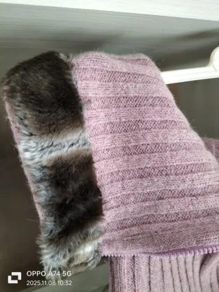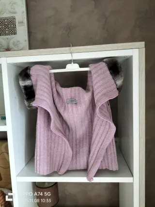 Elegante gilet Liu Jo in maglia color lilla in lana merino - Dettagli in pelliccia sintetica sulle maniche. - Orlo con volant. - Chiusura con zip.