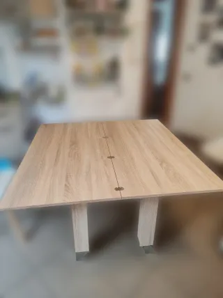 Tavolo allungabile con un design moderno e versatile. - Piano in legno con finitura chiara. - Gambe in legno. - Struttura robusta e stabile. - Dimensione 65x130x76 aperto 130x130 - Regolabile in altezza