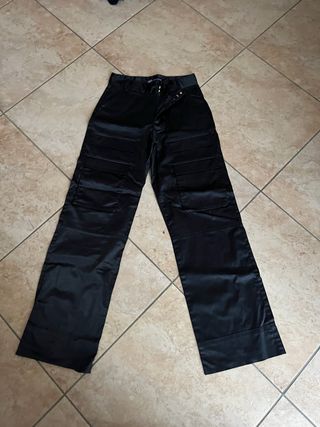 Pantaloni neri Zara con un design moderno e funzionale. - Tasche applicate sul davanti. - Tessuto lucido effetto satinato. - Gamba dritta.