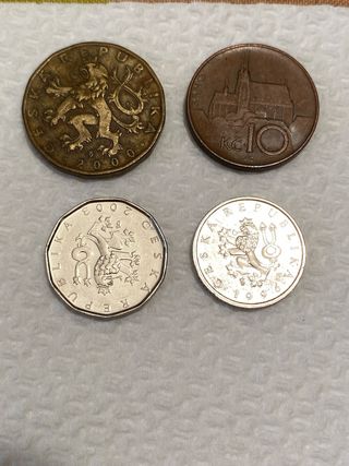 Lotto di monete della Repubblica Ceca. - Moneta da 10 Koruna (KC) con edificio. - Moneta con leone e anno 2000. - Moneta con leone e anno 1999. - Moneta con leone e anno 2003.