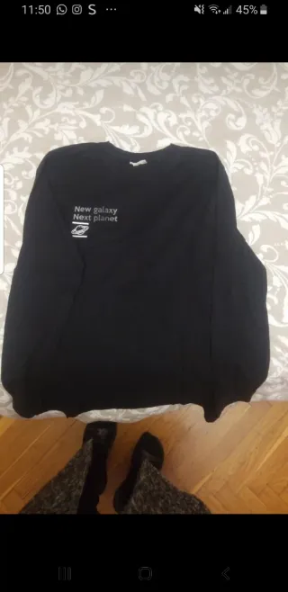Maglietta a maniche lunghe nera con una stampa a tema spaziale. - Stampa New galaxy Next planet con un disegno di un pianeta. - Colore nero.