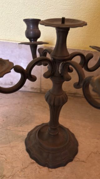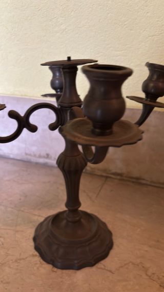 Elegante candelabro antico in metallo, perfetto per aggiungere un tocco di classe a qualsiasi ambiente. - Design a più bracci. - Base stabile e decorata. - Materiale in metallo resistente.