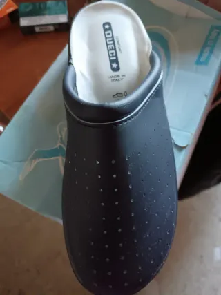 Comode pantofole da donna, perfette per un uso quotidiano. - Design con fori per una maggiore traspirabilità. - Realizzate in Italia. - Logo Dueci Comfort stampato sulla soletta.