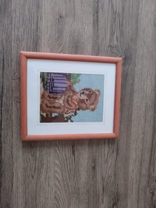 Vendo quadro realizzato a mezzo punto fatto a mano raffigurante un tenero orsetto. La tela a mezzo punto realizzata da me a mano e poi incorniciata con cornice.Le sue condizioni sono buone c'è l ho da tantissimi anni vendo semplicemente per inutilizzo. Qualora a qualcuno servissero ulteriori informazioni o ulteriori foto mi contatti pure rispondo volentieri. - Tecnica: Mezzo punto - Soggetto: Orsetto Le misure del quadro. sono approssimative