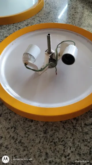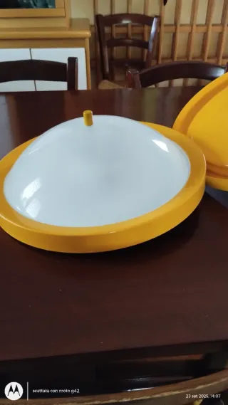 Plafoniere moderne con un design a cupola. La base è di colore giallo brillante in vetro satinato e bordi in metallo diametro 36 cm Perfette - Materiale: vetro e metallo