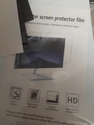 Pellicola protettiva per schermo di computer. - Tipo adesivo a adsorbimento.
