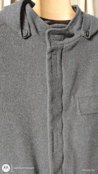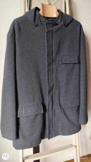 Giaccone con cappuccio, perfetto per le giornate più fresche. - Tessuto in lana 30% - Chiusura cerniera e strappo - Due tasche frontali e taschino interno - Cappuccio staccabile