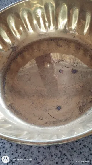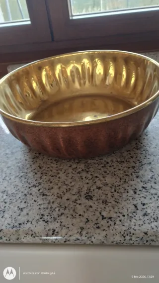 Elegante sottovaso in rame con finitura interna in ottone lucido. Presenta un design a coste che aggiunge un tocco decorativo. - Materiale: Rame e ottone - Finitura interna lucida - Design a coste