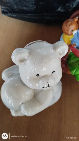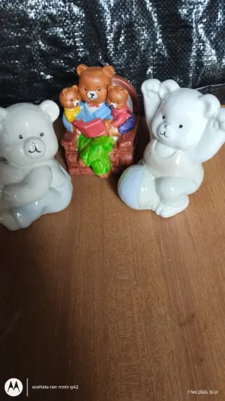 Tre salvadanai in ceramica raffiguranti degli orsetti
