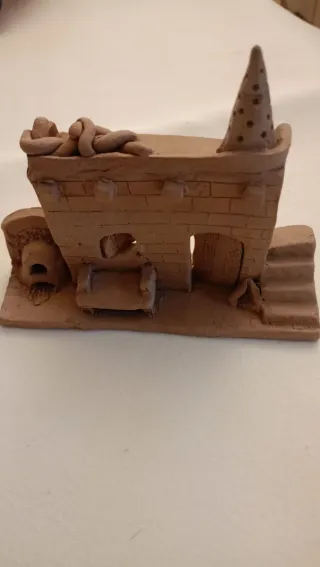 Miniatura decorativa diorama in terracotta. - Casa con forno e dettagli. - Pezzo unico artigianale.