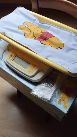 Bilancia digitale per neonati con simpatico disegno di Winnie the Pooh. - Design colorato e divertente. - Display digitale per una facile lettura del peso. - Ideale per monitorare la crescita del tuo bambino.