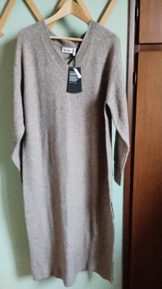 Abito lungo in maglia con scollo a V. e spacco laterale misure in foto - Tessuto morbido e confortevole. - Design versatile. - Maniche lunghe.