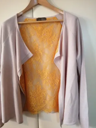 DIANA GALLESI Cardigan Pizzo Giallo Rosa