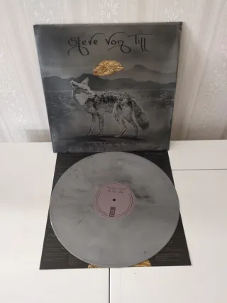 Disco in vinile LP di Steve Von Till, intitolato Alone in a World of Wounds. - Copertina con artwork di un coyote nel deserto. - Vinile grigio marmorizzato.