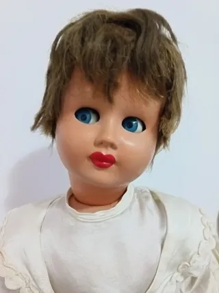 Bambola Liala vintage, un pezzo da collezione. 62 cm - Capelli castani. - Occhi azzurri. - Vestito bianco con fiocco grigio.
