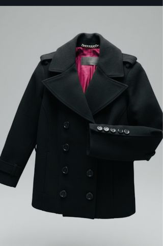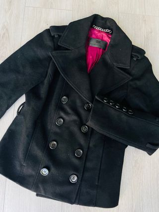 Elegante capottino in lana cotta, perfetto per aggiungere un tocco di colore al tuo guardaroba. - Modello doppiopetto. - Bottoni dorati. - Tasche applicate.