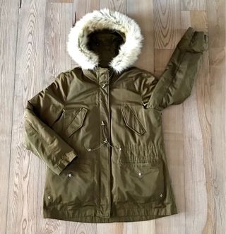 Giaccone/Piumino con cappuccio bordato in pelliccia sintetica. - Chiusura centrale con zip e bottoni. - Coulisse in vita per regolare la vestibilità. - Tasche frontali con patta. - Polsini regolabili. - Piumino amovibile tramite zip Tg. L