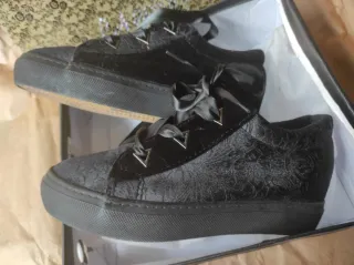 Eleganti sneakers da donna realizzate in morbido velluto. Altezza zeppa interna 5,5 cm, gomma esterna di 3 cm. Disponibili anche nel numero 37. - Dettagli con lacci in raso. - Design alla moda.