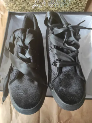 Sneakers donna velluto con lacci raso rosa 37/39