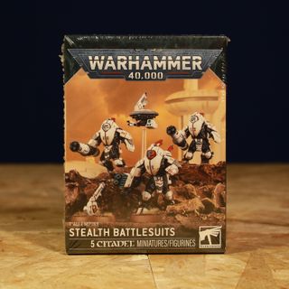 Games Workshop. Citadel. Warhammer 40.000. Scatola sigillata delle Stealth Battlesuit dell'Impero Tau.