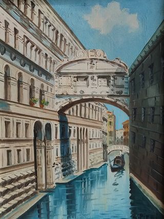 Bellissimo dipinto ad olio su tela raffigurante il Ponte dei Sospiri a Venezia, con firma. Misura con cornice: cm 55 x 44. La cornice è da considerarsi gentilmente offerta - Opera firmata dall'artista. - Tecnica ad olio su tela. - Ambientazione veneziana iconica.