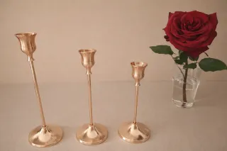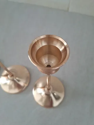 Lotto composto da oggetti vintage in ceramica e metallo. Segni di vita vissuta come mostrano le foto che sono parte integrante della descrizione - Statua di figura maschile in ceramica scuro. - Candeliere a tre bracci in metallo. - Candeliere singolo in metallo.