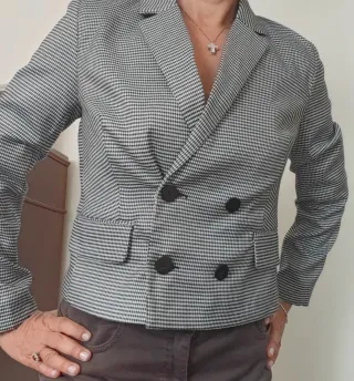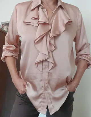 Elegante blusa Zara con un vivace motivo a pois. - Scollo all'americana con dettaglio gioiello. - Tessuto leggero Ha etichette tagliate. Indossato da taglia M ma vedi meglio misure con metro