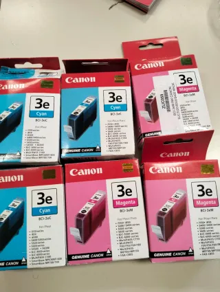 Set di cartucce d'inchiostro originali Canon. - 3 cartucce Cyan (BCI-3eC) - 3cartucce Magenta (BCI-3eM) - Compatibili con vari modelli Canon (es. BJC, MultiPASS, SmartBase). Prezzo singolo