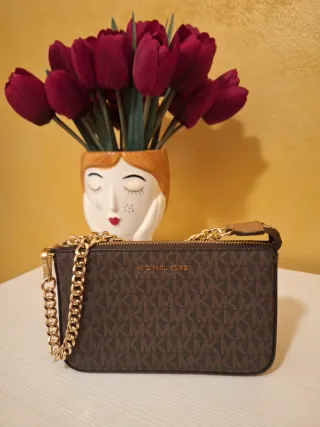 Pochette Michael Kors Jet Set Chain con iconico monogram. - Dettaglio catena color oro. - Logo Michael Kors dorato. - Chiusura con zip.