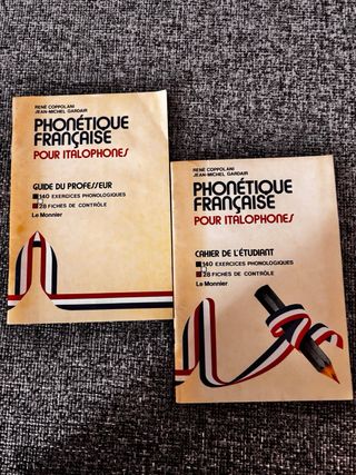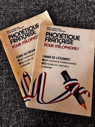 Set di due libri Phonétique Française pour Italophones. - Guide du Professeur - Cahier de l'étudiant - Entrambi pubblicati da Le Monnier. - Contengono esercizi e schede di controllo.