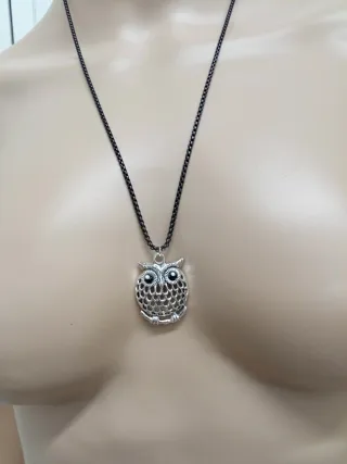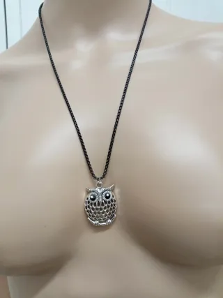 Collana con pendente gufo in acciaio nero