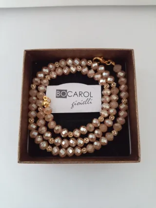 Elegante girocollo Bocarol con perle in ematite dorata opaca e cristalli di bronzo austriaco - Chiusura a moschettone dorata. - Design raffinato e luminoso.