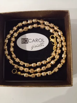 Girocollo Bocarol con perle sfaccettate in ematite dorata opaca. Un gioiello elegante e moderno. Cm 42 - Perle a forma di cubo. - Dettagli in oro. - Chiusura a moschettone.