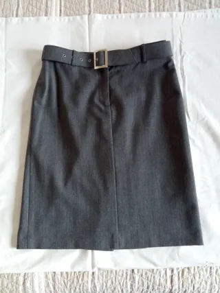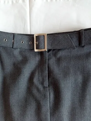 Gonna grigia Pennyblack con cintura in vita.Lunghezza cm 53 - Cintura con passanti e fibbia metallica. - Chiusura con zip e bottone. - Tessuto leggermente testurizzato.