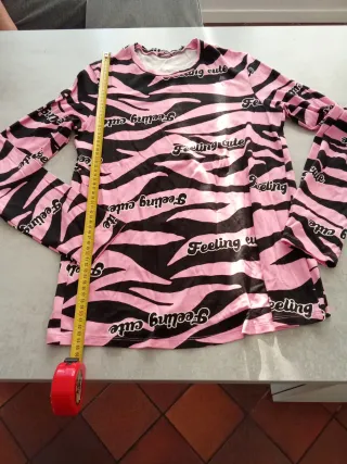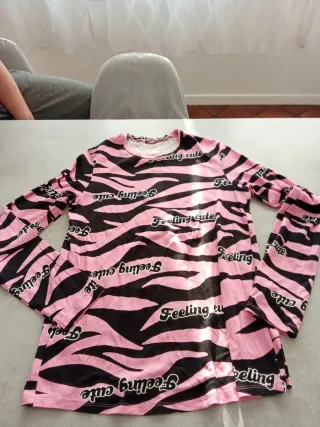 Maglia da donna a manica lunga con stampa zebrata e scritta Feeling cute. - Girocollo - Maniche lunghe - Stampa all-over