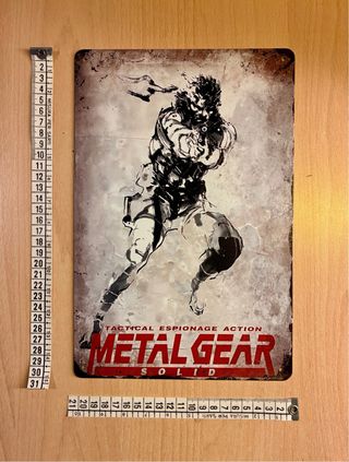 Per i super appassionati del mondo di METAL GEAR SOLID : primo capitolo versione V2 Stupendo poster in alluminio con stampa effetto vintage , formato 30×20 cm, nuovo! Perfetto da collezione ! Ottimo regalo per appassionati o per la camera da gamer!! ...vari poster in vendita... Per piu oggetti, faccio un grande sconto ... Guarda le altre mie inserzioni, per più oggetti paghi una sola spedizione ! Spedizione in box rigido ultra protettivo !! Fai un check nel mio armadio ! 😎 #posteralluminio Metal Gear Solid (メタルギアソリッド?, Metaru Gia Soriddo) è un videogioco d'azione stealth, pubblicato nel 1998 dalla software house giapponese Konam