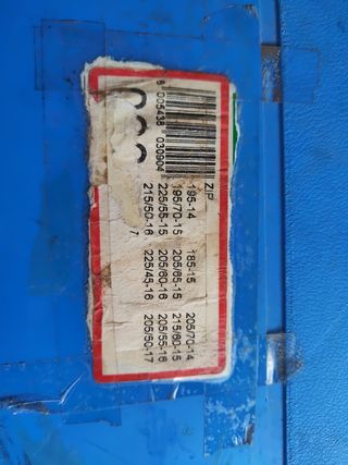 Set di catene da neve per pneumatici. - Compatibili con misure: 185/70-14, 205/65-15, 215/60-15, 225/55-16, 205/80-16, 205/55-16, 215/50-18, 225/45-16, 205/50-17. Il prodotto è nuovo, anche se il contenitore e un po' rovinato estetnamente
