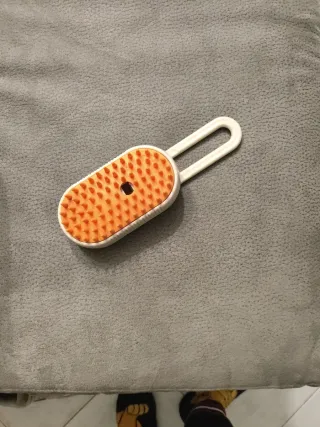 Spazzola a vapore per la cura di cani e gatti, con ricarica USB. - Design compatto e moderno. - Colore bianco e arancione.
