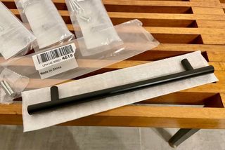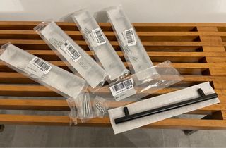 Set di 5 maniglie nere, modello tubolare tondo. Sono nuove e ancora sigillate. - Colore: Nero - Forma: Tubolare tondo - Quantità: 5 pezzi - Condizione: Nuove Diametro 1,2cm lunghe 25,6cm tra asse e asse fori 19,3cm. Nuove mai usate ancora sigillate