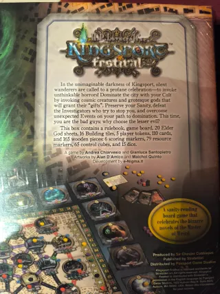 Gioco da tavolo Kingsport Festival ispirato all'universo di H.P. Lovecraft. - Creato da Andrea Chiarvesio e Gianluca Santopietro. - Illustrazioni suggestive.