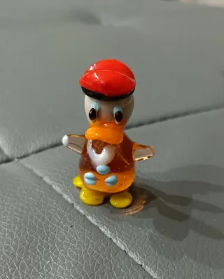 Piccola statuina di Paperino realizzata in vetro di Murano. Un pezzo unico per collezionisti. - Materiale: Vetro di Murano. - Personaggio: Paperino. - Design: Colorato con cappello rosso e dettagli azzurri. Un perfetto stato!