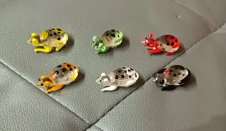 Bellissimo lotto di sei piccoli pesci tropicali realizzati in vetro di Murano. - Realizzati in vetro soffiato. - Colori vivaci e dettagli curati. - Perfetti per collezionisti o come decorazione. In perfetto stato!
