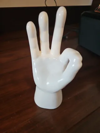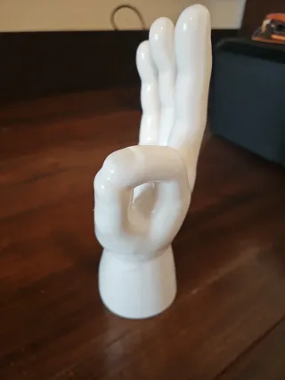 Elegante portagioie a forma di mano, realizzato in ceramica. - Design moderno e raffinato. - Base stabile per appoggio.