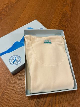 Maglietta intima Meddy, colore beige, nuova. - Confezione originale. - Dettagli in pizzo sul collo.