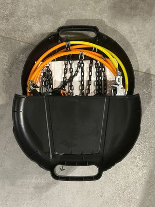 Catene da neve KÖNIG ZIP FLASH, modello 090. - Sistema di auto-tensionamento. - Adatte per diverse misure di pneumatici, tra cui 195/80-14, 205/65-15, 215/50-15, 205/50-17 e altre. - Confezione da 1 coppia. - Prodotto in Italia.